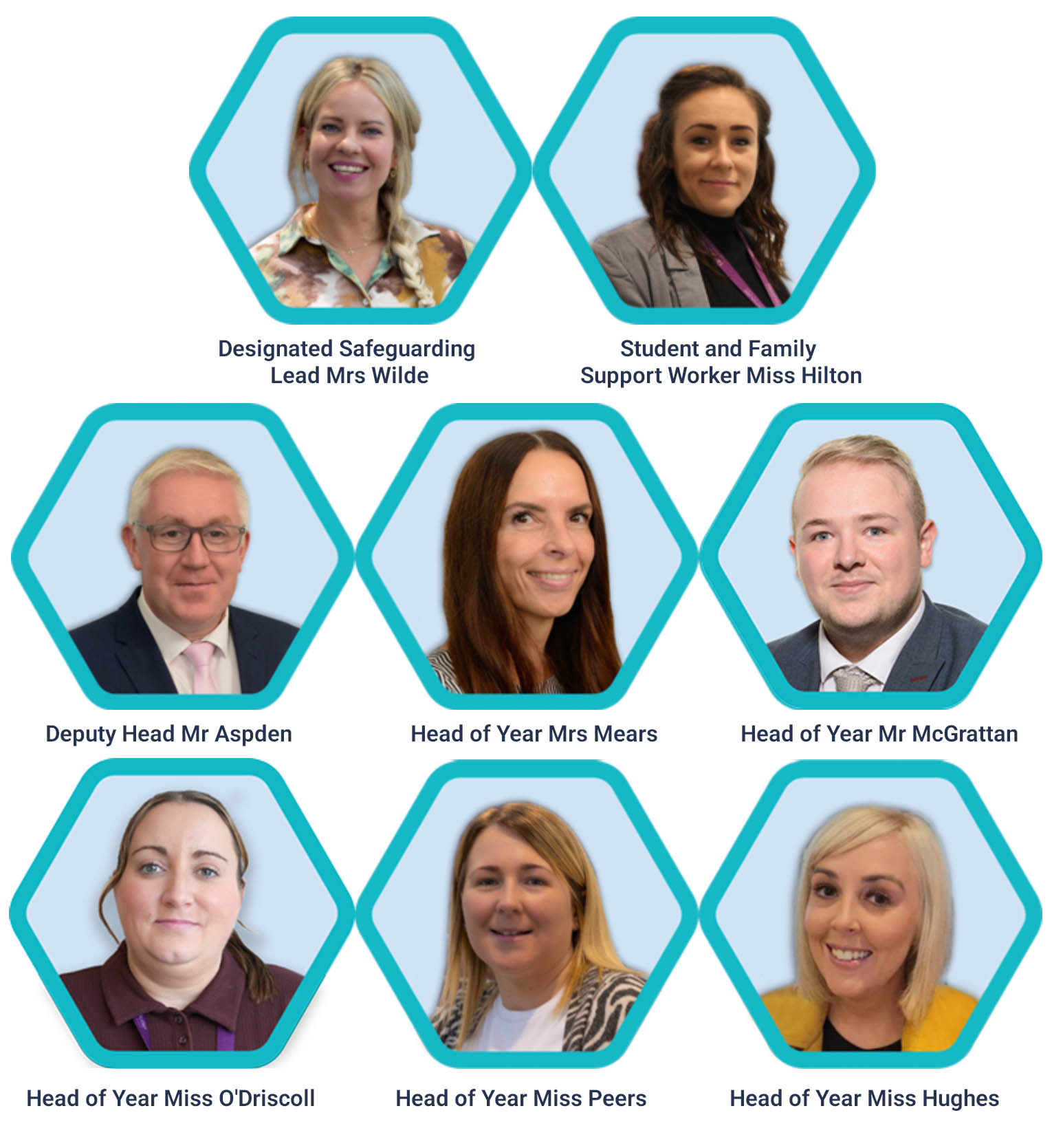 If you wish to contact us through Mrs Wilde, Miss Hilton, Mr Aspden, Mrs Meers, Mr McGrattan , Miss O'Driscoll, Miss Peers or Miss Hughes, you don't have to leave your details if you don't want to.